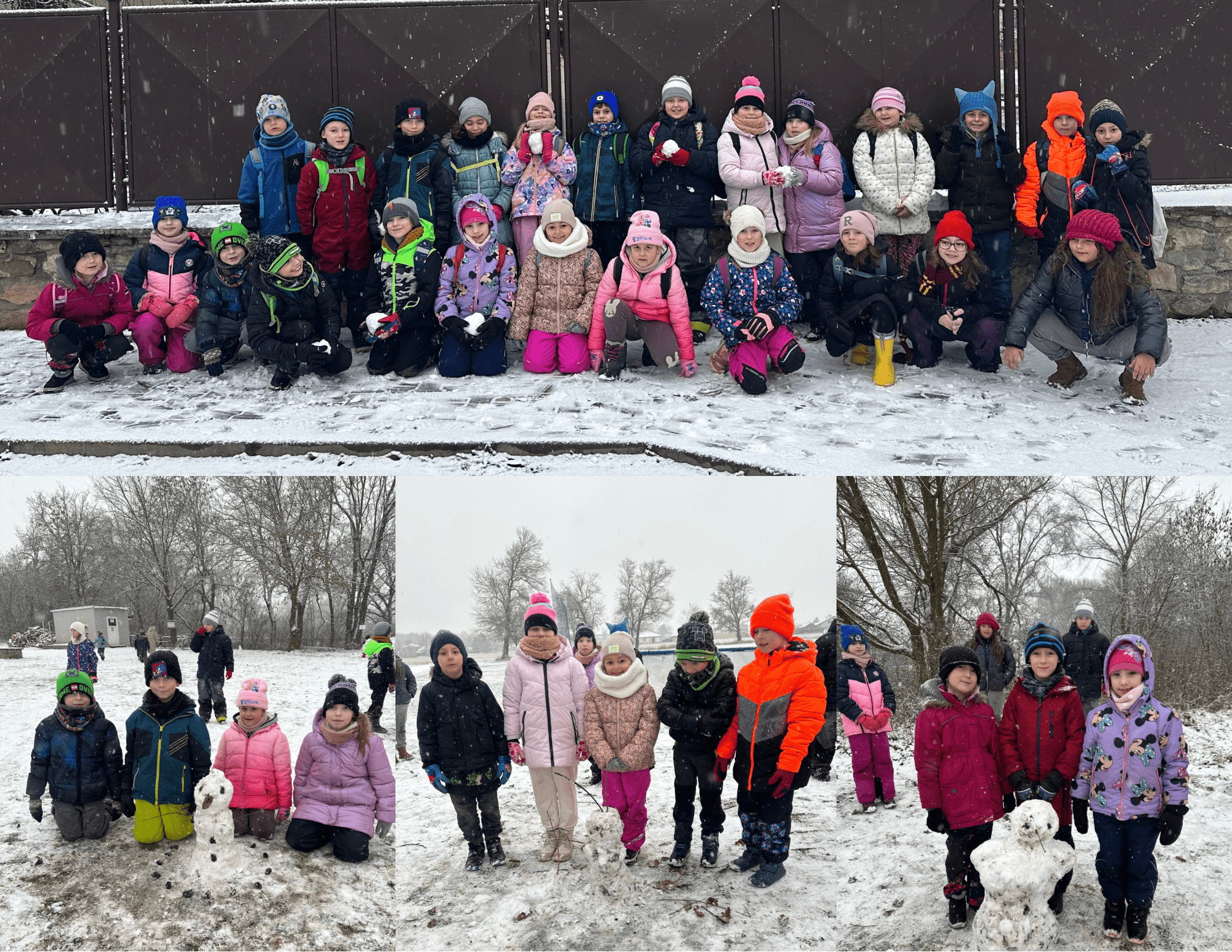 Ve čtvrtek 29. 1. již od rána sněžilo a my jsme se vydali na zasněženou zimní procházku. Došli jsme až na fotbalové hřiště. Tady jsme se rozdělili do skupin a z napadaného sněhu jsme postavili sněhuláky. Moc se povedli, ale toho NEJ uplácali Adam D., Matyáš, Kája a Leontýna.