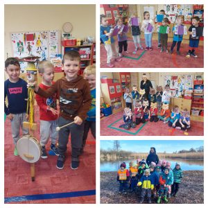V zimě si zvířátka hledají potravu velmi těžko, proto jsme ptáčkům plnili krmítko a vyráběli závěsná krmítka ze semínek. Druhý týden jsme celý prosportovali a o zimních sportech jsme se hodně dozvěděli. Ve třídě si děti vyzkoušely bruslení, curling, zahrály si hokej a nechybělo ani snowboardování na balanční desce. Další týden jsme se přenesli do vesmíru. Pozorovali hvězdnou oblohu, kterou jsme si promítali na strop. Pak již přišel dlouho očekávaný karneval, který jsme si užili v nádherných maskách.
