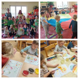 20. 3. jsme společně přivítali jaro za pomocí básničky, klíče k jaru a vyhnali zimu pryč. Každý si do vlastních květináčů nasel osení a vytvořil velikonoční zápichy. Už víme, co každá rostlinka k růstu potřebuje. Také jsme se zapojili se školáky do projektu barevného týdne. Každý den se naše školka proměnila do jiné barvy, děti přišly oblečené do zadaných barev stejných jako měly děti ve škole.
