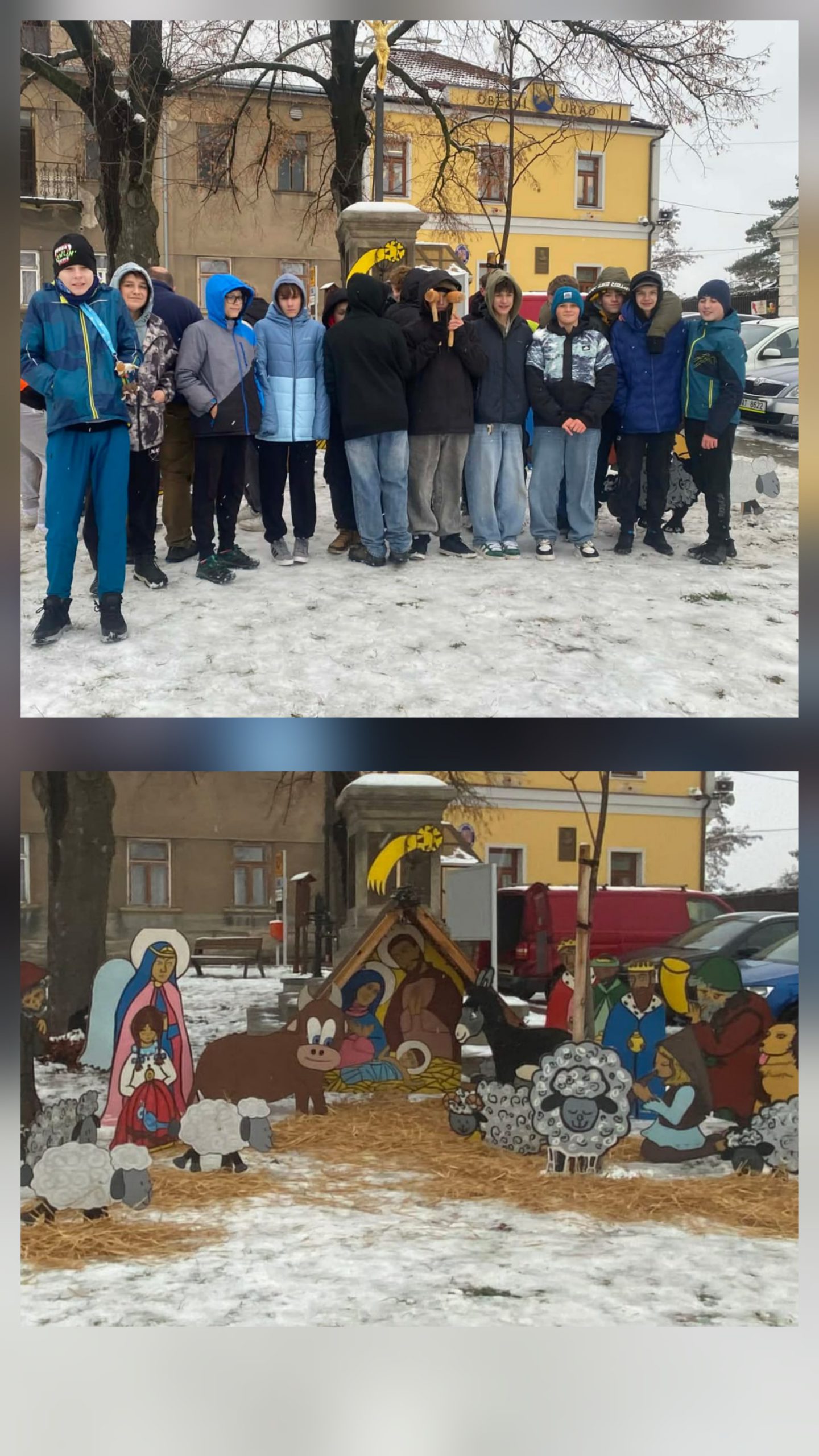 S radostí oznamujeme, že tradiční betlém je opět k vidění na svém obvyklém místě. Letos se na jeho instalaci společně podíleli chlapci ze sedmé, osmé a deváté třídy. Na první advent je tedy vše připraveno a můžeme se těšit na společné akce naší školy a obce, které budou v jeho blízkosti probíhat.