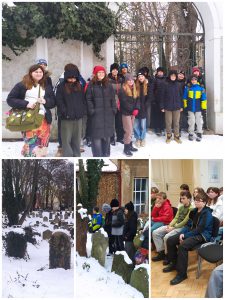 Ujala se nás paní Jouzová, která se touto problematikou zabývá. Dozvěděli jsem se mnoho zajímavých informací nejen o Židech, ale i o historii města Kolína. Po poutavé přednášce jsme se vydali na starý židovský hřbitov. Zde pokračovala další část naší přednášky.