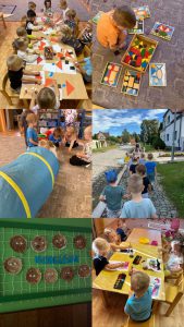 Společně jsme si povídali, poznávali pohádky, tvořili, cvičili i tančili. S Červenou Karkulkou jsme šli navštívit babičku, s Koblížkem jsme se vydali na cestu, na které potkal spoustu zvířat. Nechyběla ani Sněhurka a sedm trpaslíků, Perníková chaloupka. V pohádce Hrnečku, vař! jsme se naučili, že všeho moc škodí a u Tří prasátek jsme zjistili, jak je důležité mít pevný domeček a nebát se spolupracovat. V pohádkách jsme objevovali, že dobro je vždy lepší než zlo, a že každý příběh nakonec dobře skončí. Nechyběl ani pobyt venku – na zahradě děti dováděly na písku, prolézačkách i odrážedlech, a vyzkoušely také kratší vycházku do okolí.